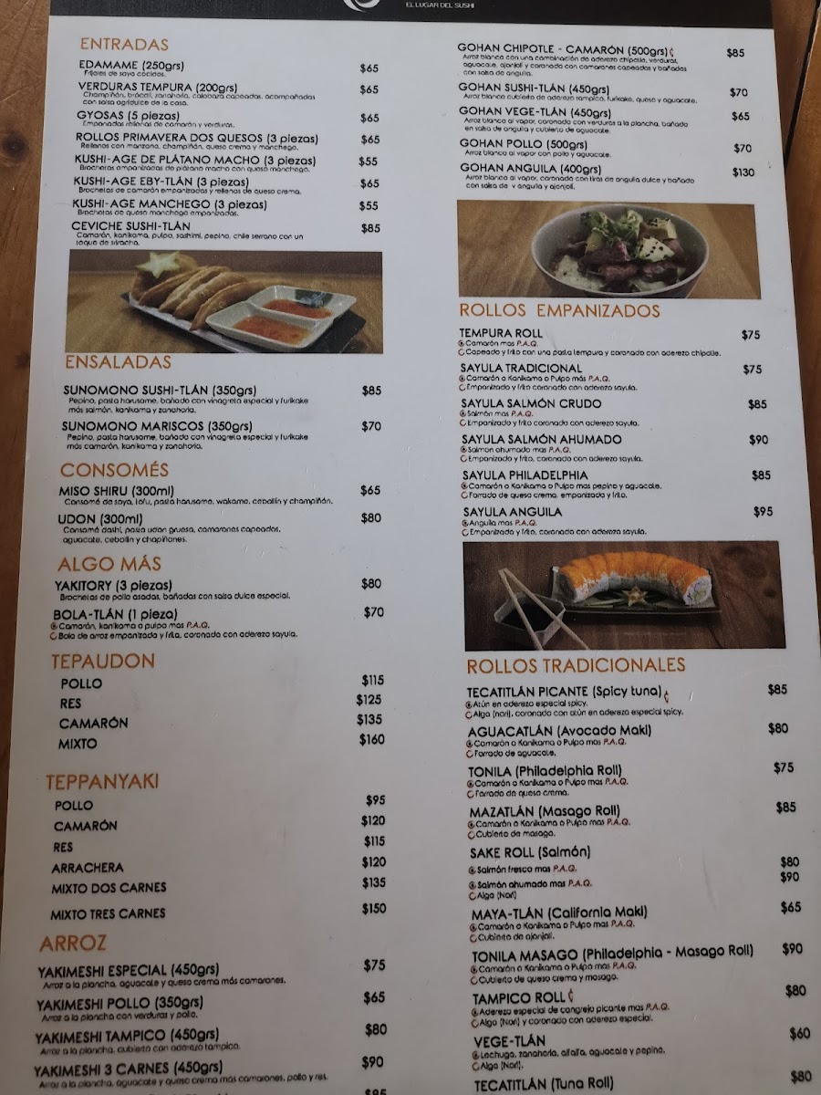 Sushi Tlan Menu